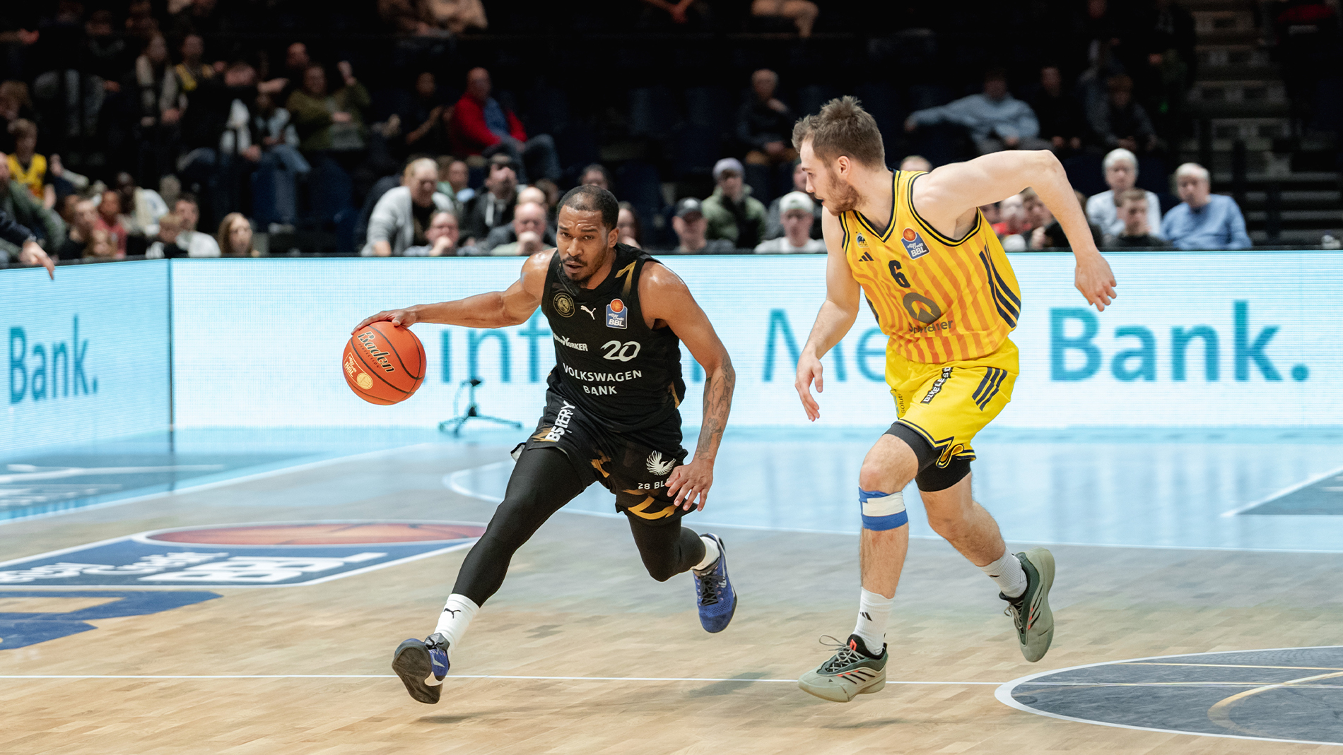 Die Partie war aber offensiv zäh, beide Teams vergaben gute Möglichkeiten und mussten teilweise hart für ihre Würfe arbeiten. Allerdings fielen die nach und nach besser bei den Gästen, während bei den Löwen vor allem von der Dreierlinie immer weniger ging. Insbesondere das Guard-Duo um Neuzugang Bryant Crawford und Kaza Kajami-Keane war das gesamte Spiel über von außen richtig kalt und hatte zur Halbzeit zusammen auch nur zwei von 13 Feldwürfen getroffen. Trotzdem konnten die Löwen die Partie bis zur 18. Minute ausgeglichen gestalten, weil sie die Rebounds jetzt unter Kontrolle und starke Szenen hatten. Das galt speziell für den unermüdlich ackernden David N’Guessan, der es gleich zweimal in Folge per Alley-Oop-Dunk zum 38:36 krachen ließ. Doch plötzlich stockte die Offensive und auch die Energie ließ nach. Fehlwürfe, Ballverluste – bis zur Pause ging nichts mehr zusammen und das nutzte ALBA für einen 10:0-Lauf zum 38:46 (20. Min.).