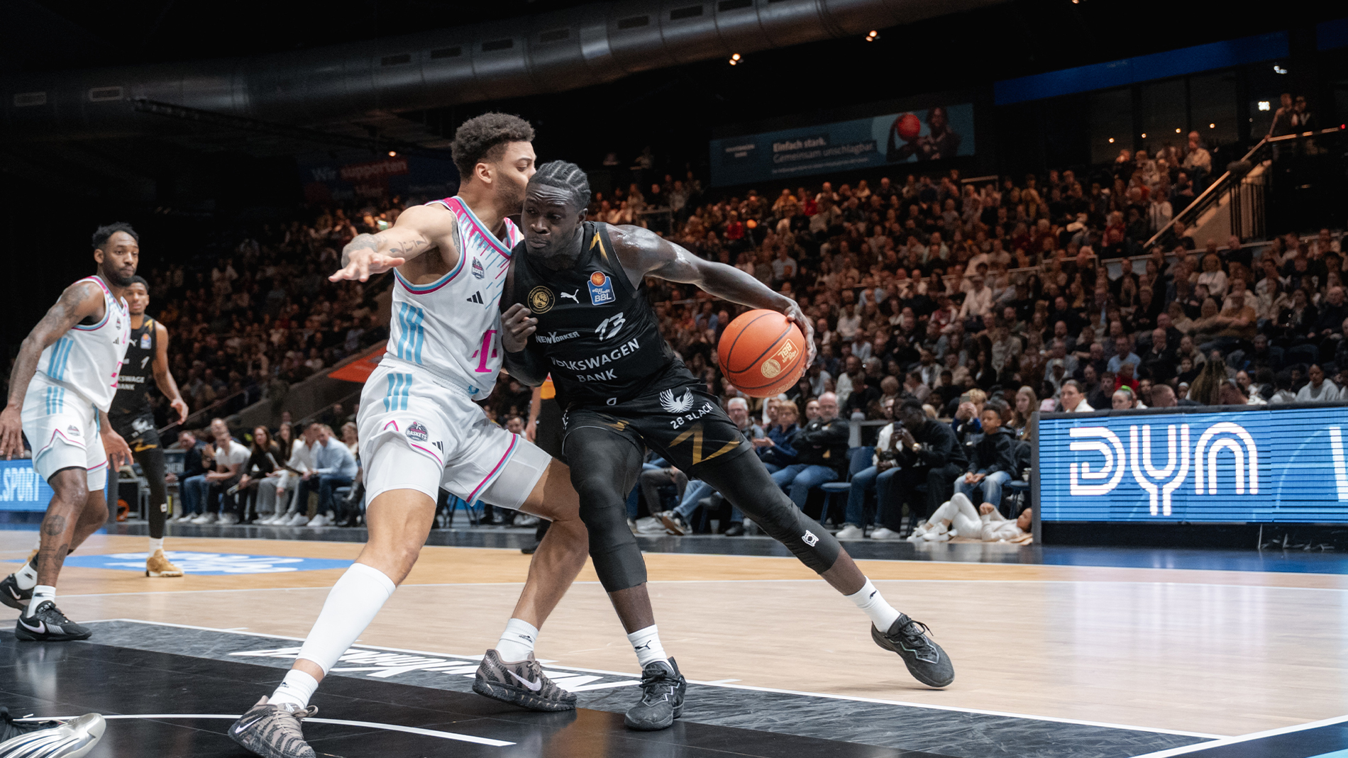 Das ist eigentlich eine Paradedisziplin der Gäste, die bis zu Pause lediglich fünf Abpraller am offensiven Brett gesammelt hatten. Dafür zeigten sie eine andere bekannte Qualität: ihre hochprozentigen Abschlüsse in der Zone, wo sie zur Pause schon 24 Punkte erzielt hatten. Das reichte aber nicht, denn die Löwen hatten nach dem kurzzeitigen Rückstand mit wichtigen Aktionen von Benny Schröder und Grant Sherfield zurückgeschlagen und gingen mit 48:43 in die Halbzeit.