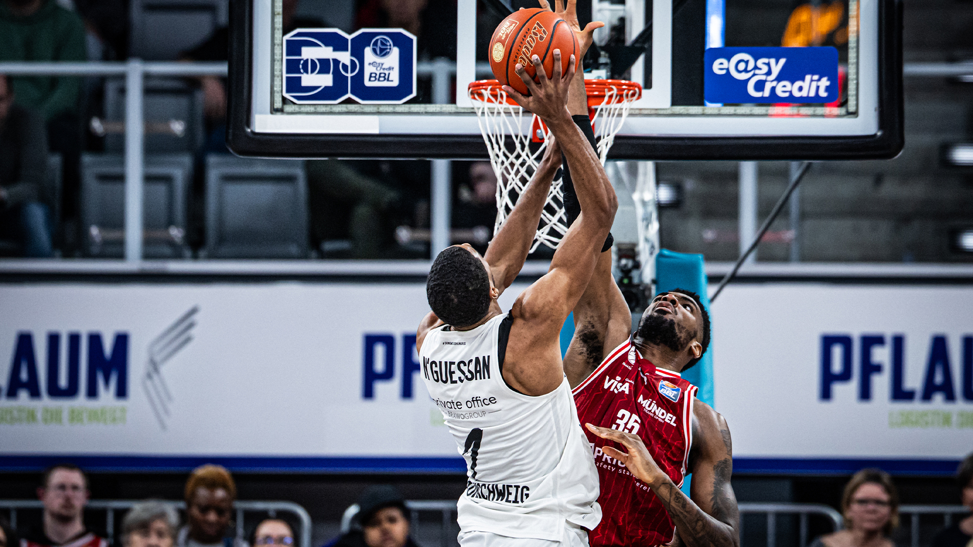Das konnten die Löwen aber noch kompensieren, die mit 23:11 ins zweite Viertel gingen. Dort stellte sich Bamberg allerdings besser auf das Spiel der Löwen ein, agierte physischer und verteidigte konsequenter. Für die Braunschweiger wurde es zunehmend schwieriger, zum Korb durchzudringen – auch, weil Top-Shotblocker EJ Onu unter dem Brett präsent war. Gleichzeitig häuften sich die Ballverluste, die Kaza Kajami-Keane und seine Mitspieler zu Beginn noch gut im Griff gehabt hatten. Die Folge war ein viertelübergreifender 8:0-Lauf der Gastgeber, die auf 23:17 verkürzten und auch beim Offensiv-Rebound präsenter wurden. Dennoch konnten sich die Löwen in dieser Phase weiterhin auf ihre Defensive und ihre Dreierquote verlassen. Immer wenn Bamberg näherkam, folgte entweder ein wichtiger Stopp oder ein erfolgreicher Distanzwurf. So auch drei Minuten vor der Pause, als Joshie Obiesie einen Dreier zum 41:28 versenkte.